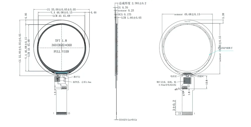 | রূপরেখা আকার | 55(H)*55(V)*2.785(T) | টাচ ইন্টারফেস | আইআইসি |