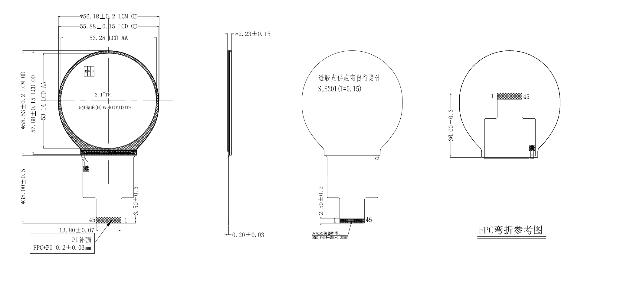 2.1-ইঞ্চি ইনসেল রাউন্ড LCD 540*540 QSPI/SPI/MCU
