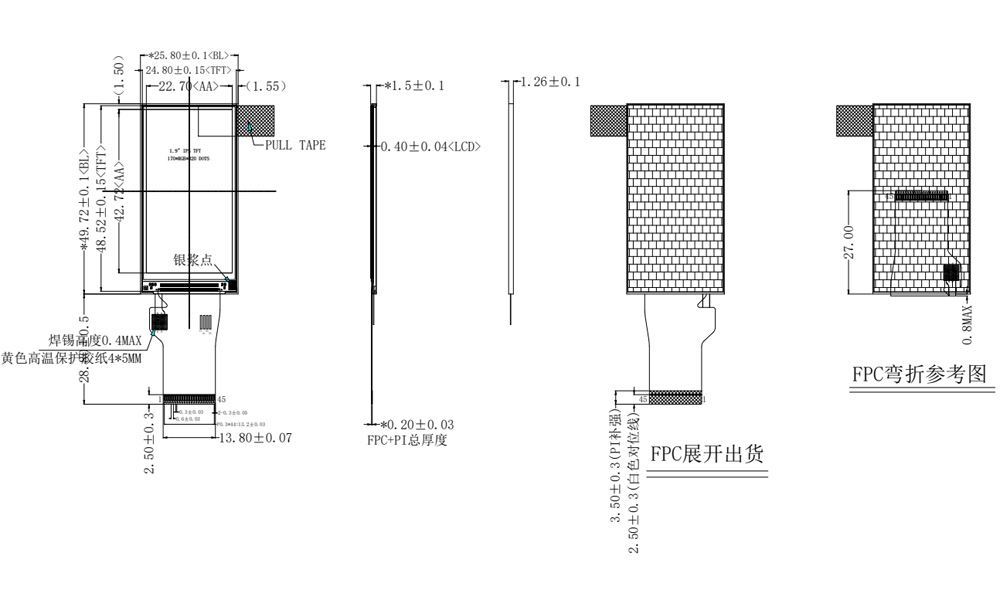 1.9-ইঞ্চি বার স্ক্রিনের রেজোলিউশন 170*320, হাই-ডেফিনিশন এবং সূক্ষ্ম ডিসপ্লে, IPS ফুল দেখার কোণ এবং SPI/MCU/RGB ইন্টারফেস সমর্থন করে। এটি পরিপক্ক ST7789 ড্রাইভার আইসি ব্যবহার করে, নির্ভরযোগ্যতা এবং স্থিতিশীলতা নিশ্চিত করে। 1.9-ইঞ্চি বার আকৃতিটি অনেকগুলি ডিভাইসের "তথ্য প্রদর্শন স্ট্রিপ" চাহিদার সাথে পুরোপুরি ফিট করে, প্রধান চাক্ষুষ এবং অপারেটিং স্থান দখল না করে সরু বেজেল, পাশ, কব্জি বা হ্যান্ডেলগুলিতে বিরামহীনভাবে একীভূত হয়৷ এর ছোট আকার এবং অত্যন্ত কম বিদ্যুত খরচ প্রধান সিস্টেমের উপর ন্যূনতম বোঝা রাখে, যা সর্বদা মূল তথ্য প্রদর্শনের অনুমতি দেয়, এটি একটি ব্যাটারি-বান্ধব সমাধান করে তোলে।