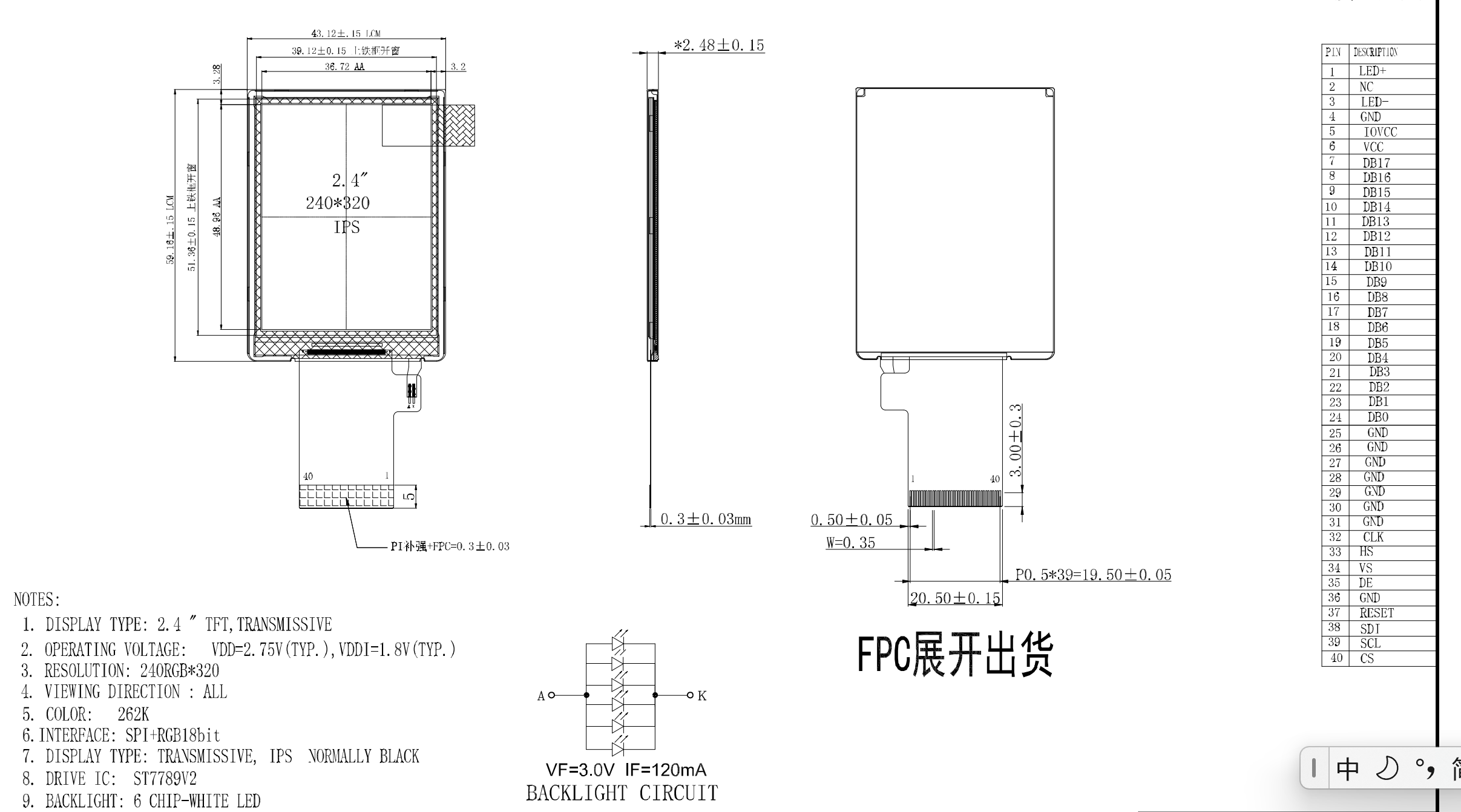 E. প্রোটোকল: সাধারণত MIPI D-PHY-এর DSI (ডিসপ্লে সিরিয়াল ইন্টারফেস) প্রোটোকলের একটি সরলীকৃত ফর্ম বা SPI ইন্টারফেসের একটি উচ্চ-স্তরের বৈকল্পিক অনুসরণ করে। ভোক্তা-গ্রেড 2.4-ইঞ্চি স্ক্রীনে, এটিকে প্রায়শই "সিরিয়াল RGB" বা "SPI RGB ইন্টারফেস" হিসাবে উল্লেখ করা হয়, মূলত সমান্তরাল RGB সংকেতকে সিরিয়াল ডেটা স্ট্রীমে রূপান্তর করতে সিরিয়ালাইজার ব্যবহার করে।