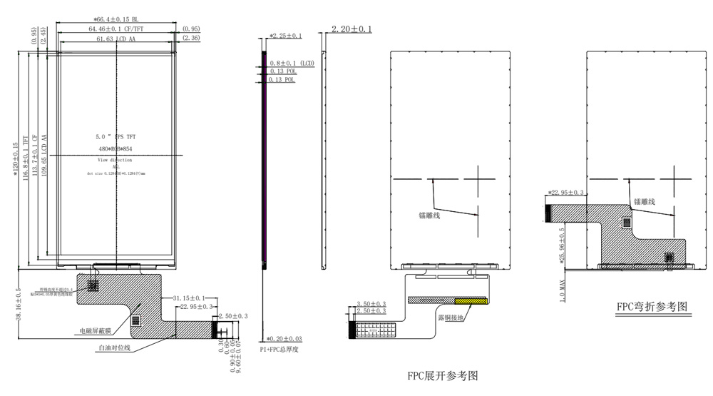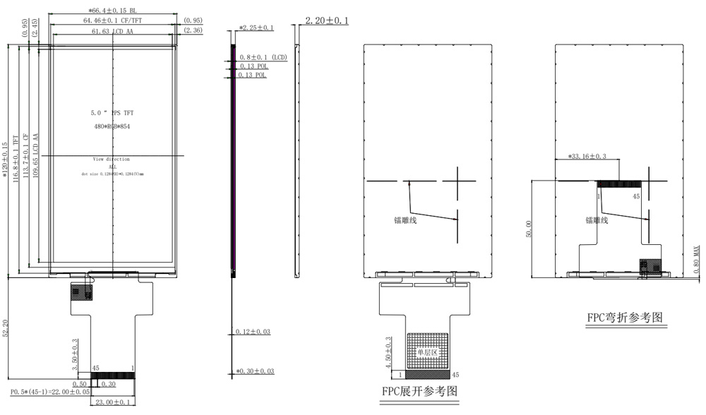 প্রকৌশলী যারা প্রায়শই হার্ডওয়্যার ডিজাইন করেন, 800*480 রেজোলিউশন এবং RGB ইন্টারফেস সহ একটি 5-ইঞ্চি ল্যান্ডস্কেপ স্ক্রিন বেশ সাধারণ। আজ, মিঃ হুয়াং, সেনজেন হংজিয়া টেকনোলজির ইঞ্জিনিয়ার ম্যানেজার, একটি পরিচয় করিয়ে দেবেন5 ইঞ্চি উল্লম্ব পর্দাএকটি 480*854 রেজোলিউশন সহ। এই স্ক্রিনে একটি সংকীর্ণ বেজেল এবং একটি 16:9 আকৃতির অনুপাত রয়েছে, যা এটিকে সরু বেজেল প্রয়োজন এমন মেশিনগুলির জন্য উপযুক্ত করে তোলে। এটি ক্লায়েন্টের মেশিনের নান্দনিকতা বাড়ায়, বেজেলগুলিকে খুব চওড়া হতে বাধা দেয়। RGB এবং MIPI ইন্টারফেসকে সমর্থন করে, এটি পরিপক্ক ILI9806E IC ব্যবহার করে, চমৎকার অ্যান্টি-স্ট্যাটিক এবং অ্যান্টি-হস্তক্ষেপ কর্মক্ষমতা প্রদান করে, এটিকে শিল্প সরঞ্জাম, সামরিক সরঞ্জাম এবং ড্রোনের মতো চাহিদাযুক্ত অ্যাপ্লিকেশনগুলিতে ব্যবহারের জন্য উপযুক্ত করে তোলে। কাঠামোগত চিত্রটি নীচে দেখানো হয়েছে। কাস্টমাইজেশনও সমর্থিত।