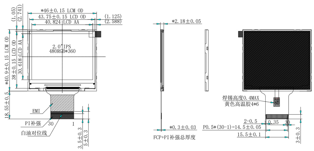 একটি ঐতিহ্যগত ডিসপ্লে স্ক্রিন হিসাবে,2.0-ইঞ্চি TFT LCD স্ক্রিনসাধারণত 240*320 রেজোলিউশন সহ পোর্ট্রেট মোডে গ্রাহকদের দ্বারা ব্যবহৃত হয়। উচ্চতর রেজোলিউশনের প্রয়োজনীয়তার জন্য, মিঃ লিউ, শেনজেন হংজিয়া টেকনোলজির একজন প্রকৌশলী, একটি 480*360 ল্যান্ডস্কেপ স্ক্রীনের সুপারিশ করেন। এই স্ক্রিনটি MIPI এবং RGB ইন্টারফেস সমর্থন করে, ST7701 ড্রাইভার IC ব্যবহার করে, 1/2 চ্যানেল MIPI ইন্টারফেস সমর্থন করে, একটি 30-পিন স্ট্যান্ডার্ড সংযোগকারী, IPS পূর্ণ দেখার কোণ, এবং -30 থেকে 80 ডিগ্রি সেলসিয়াস একটি অতি-ওয়াইড অপারেটিং তাপমাত্রা পরিসীমা সমর্থন করে৷ উজ্জ্বলতা 600-1000 লুমেনে পৌঁছাতে পারে, এমনকি সূর্যের আলোতেও স্পষ্ট দৃশ্যমানতা নিশ্চিত করে।